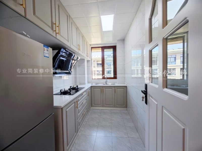 【廚 房】?jī)?yōu)等墻地瓷磚、吊頂、櫥柜、大理石臺(tái)面、柜門(mén)、油煙機(jī)、燃?xì)庠睢㈦p槽洗菜池、燈具等;
