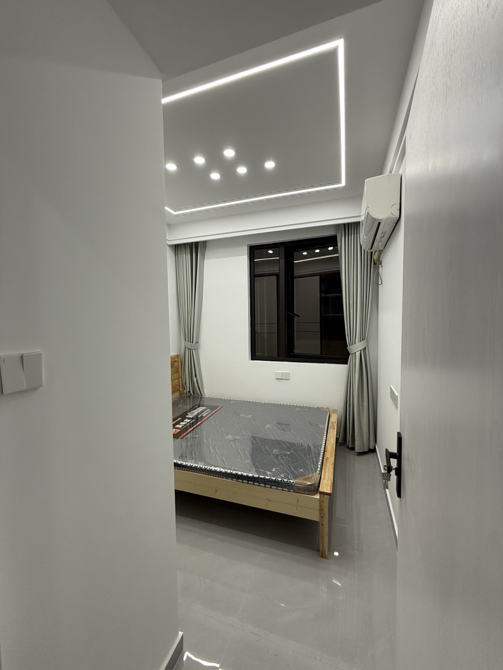 【臥 室】開關雙控、電視網線、地板、燈具、窗簾。