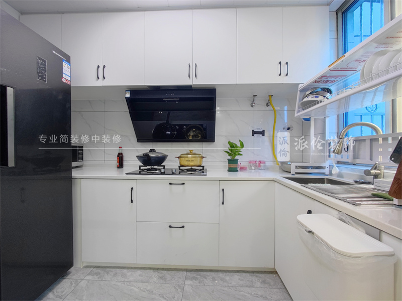 【廚 房】優等墻地瓷磚、吊頂、櫥柜、大理石臺面、柜門、油煙機、燃氣灶、雙槽洗菜池、燈具等;